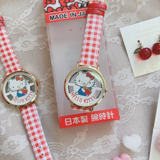 Made in Japan Hello Kitty Watch 女裝 日本製 Hello Kitty 田園紅白格仔手錶