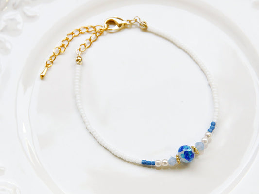 Jeenar Okinawa White Hotaru Glass 沖繩白螢琉璃手鏈 BRW-49