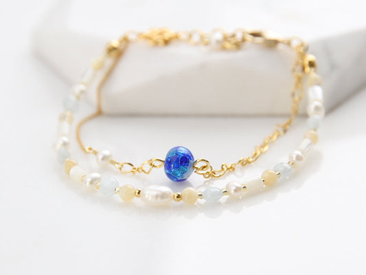Jeenar Okinawa handmade bracelet 2連淡水珍珠 白螢琉璃 BRW-103